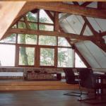 Au sein d'une ferme château l'aménagement d'anciennes granges en espaces de bureaux pour la direction. Le site, en pleine nature, communique avec l'intérieur grâce à l'ouverture du pignon.
